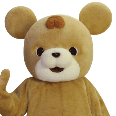 大きなお耳とクリットお目目のくま着ぐるみです。