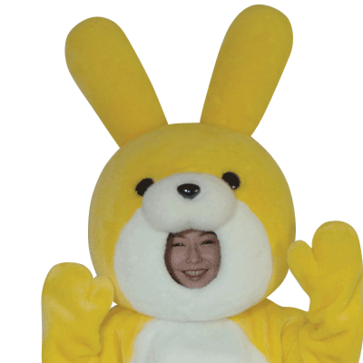 鮮やかイエローのうさぎ顔出し着ぐるみです。